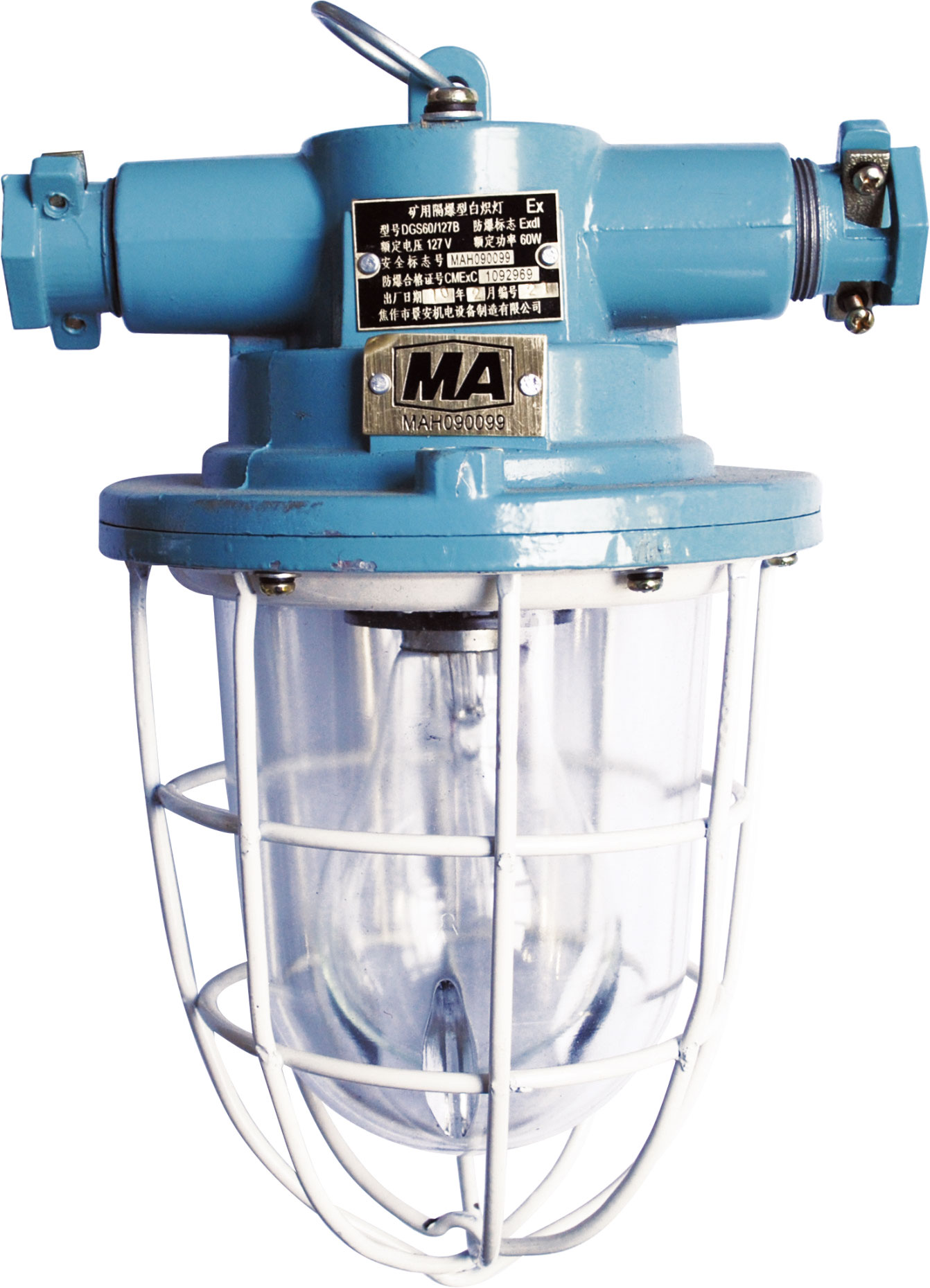 DGS60/127B礦用隔爆型白熾燈(以下簡稱60W白熾燈)。適用于具有瓦斯及煤塵爆炸危險(xiǎn)的礦井中,可供車場及機(jī)電峒室、中心變電所、大巷運(yùn)輸、泵房等場所供照明之用。